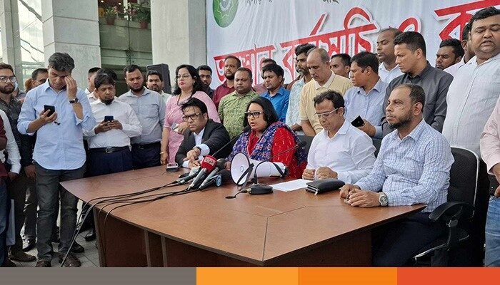 সংবাদ সম্মেলনে এনবিআর ঐক্য পরিষদের সভাপতি অতিরিক্ত কমিশনার হাছান মুহম্মদ তারেক রিকাবদার ও অতিরিক্ত কর কমিশনার মোনালিসা শাহরীন সুস্মিতাসহ আরও নেতৃবৃন্দ উপস্থিত ছিলেন।