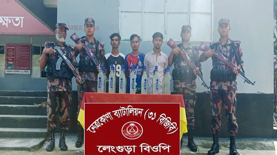 নেত্রকোনার কলমাকান্দা উপজেলায় সীমান্ত এলাকায় অভিযান চালিয়ে ভারতীয় মদসহ তিন যুবককে আটক করেছে বর্ডার গার্ড বাংলাদেশ (বিজিবি)।