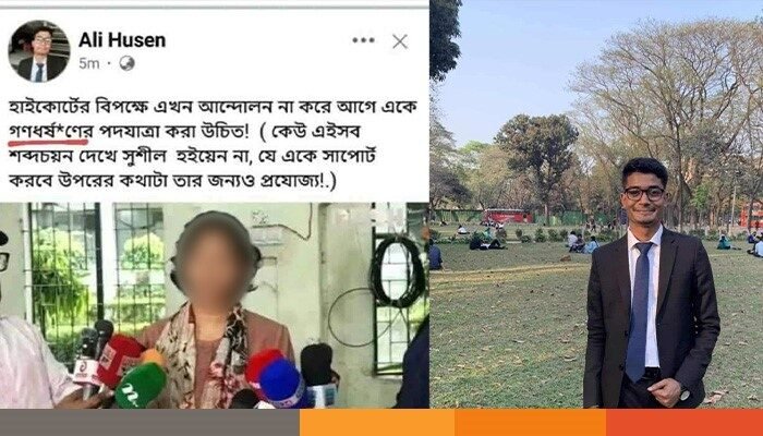 জানা যায়, ইসলামী ছাত্রশিবির সমর্থিত জিএস প্রার্থী এস এম ফরহাদের প্রার্থিতা বাতিলের জন্য হাইকোর্টে রিট করা ‘অপরাজেয় ৭১, অদম্য-২৪’ প্যানেলের মুক্তিযুদ্ধ ও গণতান্ত্রিক আন্দোলন বিষয়ক সম্পাদক প্রার্থী বিএম ফাহমিদা আলমকে গণধর্ষণের হুমকি দেন বিশ্ববিদ্যালয়ের ২০২০-২১ সেশনের সমাজবিজ্ঞান বিভাগের শিক্ষার্থী আলি হুসেন। তিনি শহীদ সার্জেন্ট জহুরুল হক হলের একজন আবাসিক শিক্ষার্থী। সামাজিক যোগাযোগমাধ্যমে ফাহমিদার ছবি পোস্ট করে হুসেন লেখেন, ‘হাইকোর্টের বিপক্ষে আন্দোলন না করে আগে একে গণধর্ষণের পদযাত্রা করা উচিত। (কেউ এইসব শব্দচয়ন দেখে সুশীল হইয়েন না, যে একে সাপোর্ট করবে উপরের কথাটা তার জন্যও প্রযোজ্য।’