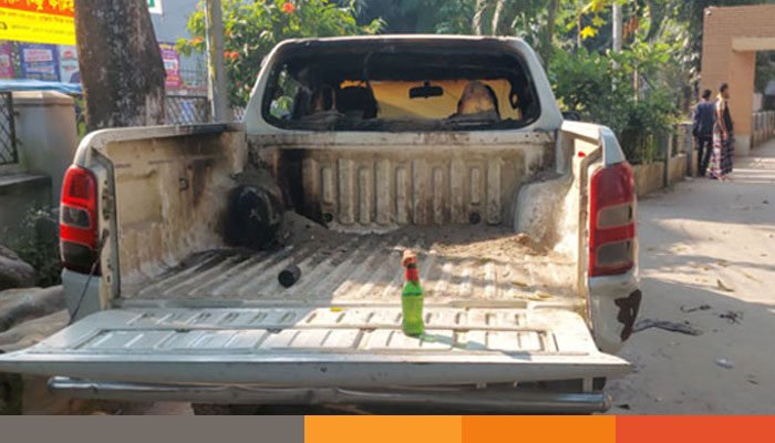 গণপূর্ত অফিসের নিরাপত্তা কর্মী আব্দুল রাহিম জানায়, ভোর রাতে কে বা কারা গণপূর্ত অফিসের মধ্যে বেশ কয়েকটি পেট্রল বোমা নিক্ষেপ করে। এ সময় গণপূর্ত অফিসে থাকা একটি গাড়িতে আগুন ধরে যায়। পরে বিষয়টি টের পেয়ে গণপূর্ত অফিসের কর্মচারীদের চেষ্টায় গাড়ির আগুন নিভিয়ে ফেলে। এতে গাড়িটি ক্ষতিগ্রস্ত হয়। এ ঘটনার পর এলাকাজুড়ে আতঙ্ক সৃষ্টি হয়।