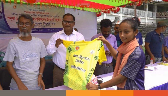তারুণ্যের উৎসব ২০২৫ উপলক্ষে ক্রিড়া পরিদপ্তরের বার্ষিক ক্রীড়া কর্মসূচি ২০২৪-২৫ বাস্তবায়নে ঝিনাইদহে এথলেটিক্স প্রশিক্ষণের উদ্বোধন অনুষ্ঠিত হয়েছে। এ উপলক্ষে আজ মঙ্গলবার বেলা ১১টার দিকে ঝিনাইদহ বীরশ্রেষ্ঠ হামিদুর রহমান স্টেডিয়ামে এ অনুষ্ঠানের উদ্বোধন করেন জেলা প্রাথমিক শিক্ষা অফিসার আনন্দ কিশোর সাহা।