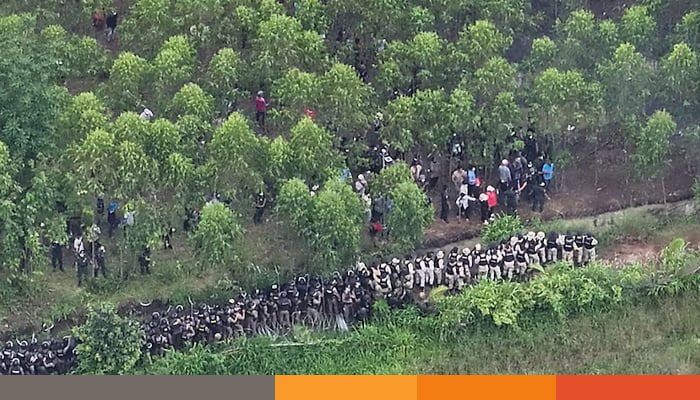 এক বিবৃতিতে থাইল্যান্ডের সেনাবাহিনী জানিয়েছে, বুধবার স্থানীয় সময় সকালে কম্বোডিয়া থেকে প্রায় ২০০ মানুষ লাঠি ও পাথর হাতে সীমান্ত পেরিয়ে থাইল্যান্ডের সীমানায় এসে সীমান্তরক্ষীদের আক্রমণ করে। এ সময় তাদের থামাতে টিয়ার গ্যাসের শেল, লাঠি, রবার বুলেট ও সাউন্ড গ্রেনেড ব্যবহার করে সীমান্তরক্ষী বাহিনী ও দাঙ্গা পুলিশ।