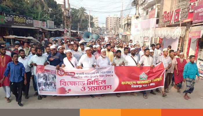 ২৮ অক্টোবর আওয়ামী হায়েনাদের লগী-বৈঠার তান্ডব ও ঐতিহাসিক পল্টন ট্রাজেডি দিবস উপলক্ষে দিনাজপুর শহর ও সদর উপজেলা জামায়াতের বিক্ষোভ মিছিল ও সমাবেশ অনুষ্ঠিত হয়েছে। কেন্দ্রীয় কর্মসূচির অংশ হিসেবে দিনাজপুরে এই বিক্ষোভ মিছিল ও সমাবেশ অনুষ্ঠিত হয়।