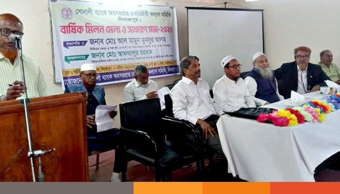 দিনাজপুর শহরের বালুবাড়ীস্থ পল্লীশ্রী মিলনায়তনে সোনালী ব্যাংক অবসরপ্রাপ্ত চাকুরীজীবী কল্যাণ সমিতি’র বার্ষিক মিলন মেলা ও সাধারন সভা-২০২৫ অনুষ্ঠিত হয়েছে।