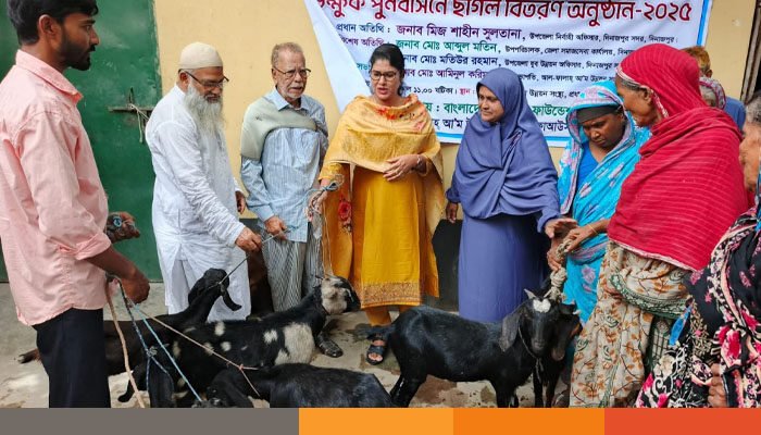 এরই ধারাবাহিকতায় বাংলাদেশ এনজিও ফাউন্ডেশন (বিএনএফ) কর্তৃক আর্থিক অনুদানে ভিক্ষুক পুনর্বাসন প্রকল্প বাস্তবায়নে প্রকল্পের লক্ষ্য ও উদ্দেশ্যের সঙ্গে সামঞ্জস্যপূর্ণ রেখে বিএনএফ এর নির্দেশনা অনুযায়ী ভিক্ষুকদের মধ্যে ছাগল বিতরণে স্থানীয়ভাবে যাচাই-বাছাই করে ১০ জন উপকারভোগী নির্বাচন করা হয়েছে। ১০ জন উপকারভোগী-কে বিনামূল্যে ২টি করে মোট ২০ টি ছাগল প্রদান করা হয়েছে।