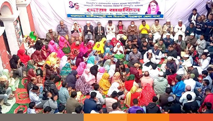 বিএনপি চেয়ারপার্সন দেশনেত্রী বেগম খালেদা জিয়ার রোগমুক্তি কামনায় দিনাজপুর জেলা বিএনপি’র আয়োজনে দোয়া-মাহফিল অনুষ্ঠিত হয়েছে। দোয়া পরিচালনা করেন মাওলানা মো. জাকির হোসেন শাহীন।