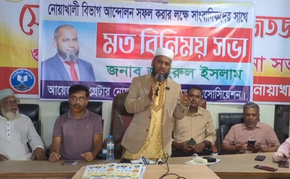 বুধবার (১৫ অক্টোবর) দুপুরে নোয়াখালীর সোনাইমুড়ী প্রেসক্লাবে নোয়াখালী বিভাগ আন্দোলন সফল করার লক্ষ্যে’ সাংবাদিকদের সাথে এক মতবিনিময় সভায় তিনি এই ঘোষণা দেন।