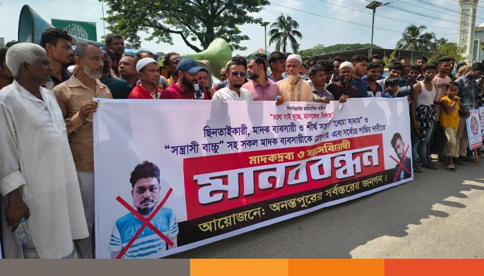 নোয়াখালীতে মাদক ব্যবসায়ীদের গ্রেফতার ও শাস্তির দাবিতে মানববন্ধন
