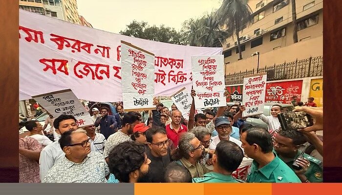 প্রাথমিক বিদ্যালয়ে সংগীত ও শারীরিক শিক্ষা বিষয়ে শিক্ষক নিয়োগ বাতিলের সিদ্ধান্ত পুনর্বিবেচনার দাবিতে প্রধান উপদেষ্টার বাসভবন অভিমুখে উদীচী শিল্পীগোষ্ঠীর গানের মিছিল আটকে দিয়েছে পুলিশ।