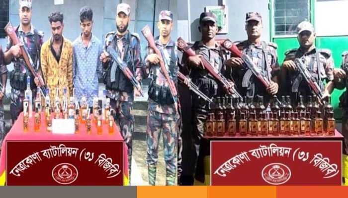 ৩১ বিজিবি’র অধিনায়ক জানান, আজ (শুক্রবার) সকাল পৌনে ৭টার দিকে নিজেস্ব গোয়েন্দা তথ্যের ভিত্তিতে নেত্রকোনা ব্যাটালিয়নের দায়িত্বপূর্ণ অধীনস্থ বরুয়াকোনা বিওপি’র (বর্ডার অবজারবেশন পোষ্ট) ছয় সদস্যের একটি বিশেষ টহল দল মাদক বিরোধী অভিযান পরিচালনা করে। এ অভিযানে ওই বিওপি’র দায়িত্বপূর্ণ সীমান্ত পিলার ১১৮১/৩-এস হতে আনুমানিক তিনশো গজ বাংলাদেশের অভ্যন্তরে রংছাতি ইউনিয়নের পাতলাবন নামক এলাকা থেকে ভারতীয় বিভিন্ন ব্র্যান্ডে ৩৫ বোতল মদসহ দুজন চোরাকারবারিকে আটক করতে সক্ষম হয় টহল দলটি।