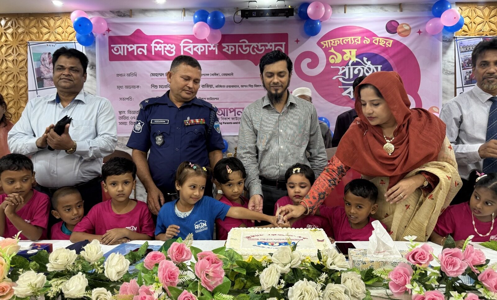 এবার আপন শিশু বিকাশ ফাউন্ডেশনের নবম প্রতিষ্ঠাবার্ষিকীর অনুষ্ঠানটি ছিল বর্ণাঢ্য।সকালে নোয়াখালীরে কেন্দ্রীয় শহিদ মিনারের পাদদেশ থেকে সুশৃঙ্খলভাবে বিশাল বর্ণাঢ্য শোভাযাত্রা বের হয়। শোভাযাত্রাটি শহরের গুরুত্বপূর্ণ এলাকা পদক্ষিণ শেষে পুনরায় শহীদ মিনার প্রাঙ্গণে এসে শেষ হয়।