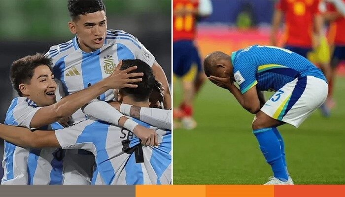 চিলিতে অনুষ্ঠিত ফিফা অনূর্ধ্ব-২০ বিশ্বকাপে গ্রুপ পর্ব থেকেই বিদায় নিয়েছে ব্রাজিল। শনিবার (৪ অক্টোবর) গ্রুপ পর্বে নিজেদের শেষ ম্যাচে স্পেনের কাছে ১-০ গোলে হেরেছে সেওলেসাওরা। এই হারে বিশ্বকাপ থেকেই ছিটকে গেছে ব্রাজিল অনূর্ধ্ব-২০ দল। আগের ১৯ অংশগ্রহণে ৫ বার চ্যাম্পিয়ন এবং চারবার রানার্সআপ হয়েছে দলটি। সবচেয়ে বাজে ফল ছিল ২০০৭ আসরে— দ্বিতীয় রাউন্ড। এবার তা ছাপিয়ে গ্রুপ পর্বে চতুর্থ হয়ে বিদায়। একই রাতে গ্রুপসেরা হয়ে দ্বিতীয় রাউন্ডে উঠেছে আর্জেন্টিনা অনূর্ধ্ব-২০ দল।