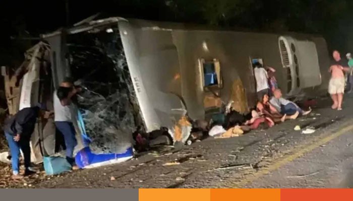 পুলিশের এক বিবৃতিতে বলা হয়েছে, স্থানীয় সময় গত শুক্রবার রাত ৮টার কিছু আগে বাসটির চালক নিয়ন্ত্রণ হারালে গাড়িটি বিপরীত লেনে ঢুকে পড়ে। এরপর সড়কের পাশে পড়ে থাকা পাথরে ধাক্কা খেয়ে একটি বালুর বাঁধে গিয়ে বাসটি আঘাত করে এবং উল্টে যায়।