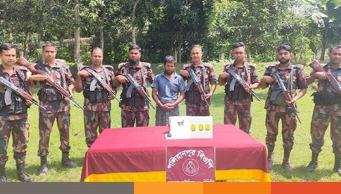 বিজিবি জানিয়েছে, সীমান্তের পলিয়ানপুর বিওপি বিজিবির টহল দল বেলা ১১টার দিকে সীমান্ত এলাকায় অভিযান চালায়। এসময় সীমান্ত পিলার ৬০/১০৫-আর সংলগ্ন খোসালপুর গ্রামের রাস্তার উপর হতে ৩টি স্বর্ণের বার সহ আমিরুল ইসলামকে আটক করে বিজিবি। জব্দকৃত স্বর্ণ ঝিনাইদহ জেলা সরকারী কোষাগারে জমা করার কার্যক্রম প্রক্রিয়াধীন রয়েছে। এছাড়া আটক আমিরুল ইসলামকে মহেশপুর থানায় সোপর্দ করেছে বিজিবি।