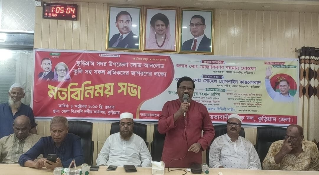 শ্রমিকের ঘামেই দেশের অর্থনীতি এগিয়ে যায়,তাদের সম্মান, অধিকার ও মর্যাদা রক্ষাই আমাদের অঙ্গীকার-এ প্রতিপাদ্যকে ধারণ করে কুড়িগ্রামে সদর উপজেলা লোড- আনলোড এবং কুলি সহ সকল শ্রমিকদের জাগরনের লক্ষ্যে বাংলাদেশ জাতীয়তাবাদী শ্রমিক দলের মতবিনিময় সভা অনুষ্ঠিত হয়েছে।