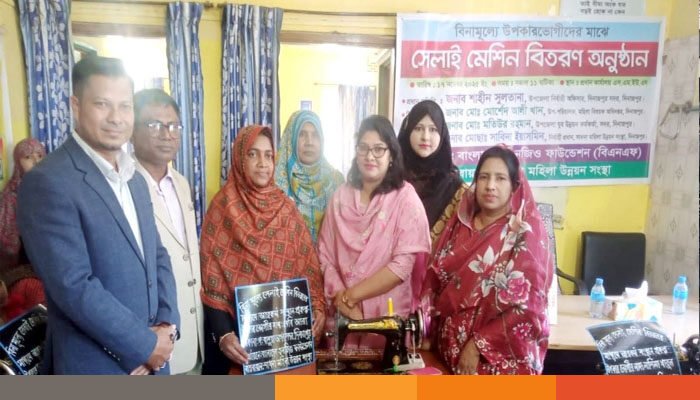 সাধনা মহিলা উন্নয়ন সংস্থার নির্বাহী প্রধান মোছাঃ সাবিনা ইয়াসমিন এর সভাপতিত্বে প্রধান অতিথি দিনাজপুর সদর উপজেলা নির্বাহী অফিসার শাহীন সুলতানা উপকারভোগী নারীদের মাঝে সেলাই মিশন বিতরণ করতে গিয়ে বলেন, নারীরা অর্থনৈতিক মুক্তি ও স্বাবলম্বি হলে নারীদের ক্ষমতায়ন বৃদ্ধি পাবে। বাংলাদেশ এনজিও ফাউন্ডেশন বিভিন্ন কর্মসূচীর মাধ্যমে তাদের সহযোগিতা করছে। এবং তারা স্বনির্ভর হচ্ছে।