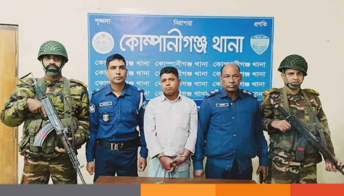 কোম্পানীগঞ্জ থানার ভারপ্রাপ্ত কর্মকর্তা (ওসি) গাজী মুহাম্মদ ফৌজুল আজিম বলেন, যৌথবাহিনী গোপন সংবাদ ভিত্তিতে তার বাড়িতে অভিযান চালিয়ে তাকে গ্রেপ্তার করে। এসময় একটি পিস্তল, একটি এলজি ও একটি কার্তুজ জব্দ করা হয়। এ ঘটনায় পুলিশ বাদী হয়ে তার বিরুদ্ধে অস্ত্র আইনে মামলা দিয়েছে।