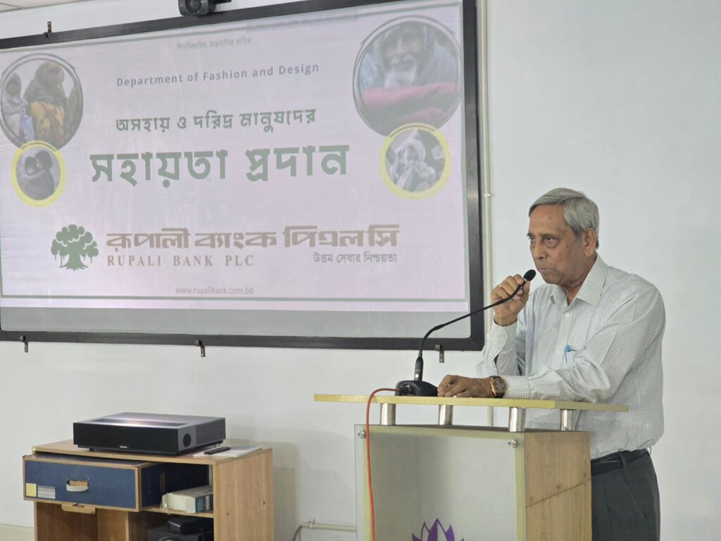 উল্লেখ্য, রূপালী ব্যাংক পিএলসি ফ্যাশন বিভাগের বিভিন্ন উন্নয়নমূলক কার্যক্রমে নিয়মিত পৃষ্ঠপোষকতা প্রদান করে আসছেঝ। বিশ্ববিদ্যালয় কর্তৃপক্ষ বিশ্বাস করে, এ ধরনের উদ্যোগ সমাজে মানবিক মূল্যবোধ ও সহমর্মিতার চর্চা আরও বিস্তৃত করবে এবং অসহায় মানুষের কষ্ট লাঘবে কার্যকর ভূমিকা রাখবে।