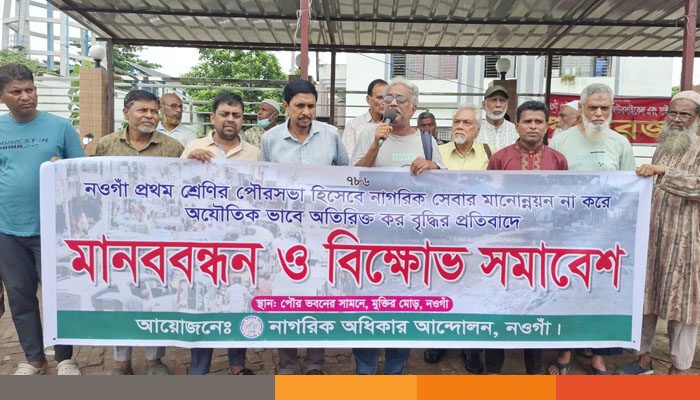 অস্বাভাবিক করের বোঝা নওগাঁ পৌরবাসির কাঁধে, প্রতিবাদে মানববন্ধন
