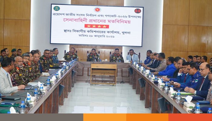 এ উপলক্ষে খুলনা বিভাগীয় কমিশনারের কার্যালয়ে আয়োজিত এক সভায় তিনি ঊর্ধ্বতন সামরিক কর্মকর্তা, বিভাগীয় ও জেলা প্রশাসনের কর্মকর্তা এবং বিভিন্ন আইনশৃঙ্খলা রক্ষাকারী বাহিনীর প্রতিনিধিদের সঙ্গে মতবিনিময় করেন। সভায় আসন্ন জাতীয় সংসদ নির্বাচনকে শান্তিপূর্ণ, সুষ্ঠু ও নিরপেক্ষভাবে সম্পন্ন করতে আন্তঃপ্রাতিষ্ঠানিক সমন্বয় জোরদার এবং সমন্বিত নিরাপত্তা পরিকল্পনা বাস্তবায়নের ওপর গুরুত্বারোপ করা হয়।