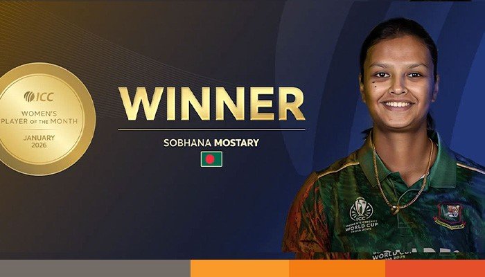 আইসিসি নারী টি-টোয়েন্টি বিশ্বকাপের গ্লোবাল কোয়ালিফায়ারে দারুণ পারফরম্যান্সের স্বীকৃতি পেলেন সোবহানা মোস্তারি। ২০২৬ সালের জানুয়ারি মাসের আইসিসির সেরা নারী খেলোয়াড় হয়েছেন বাংলাদেশের এই ক্রিকেটার।