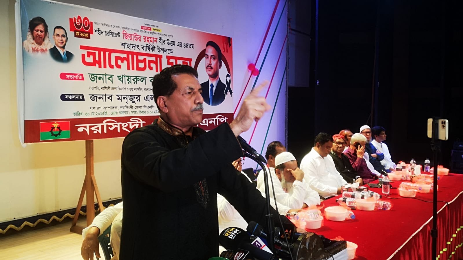 জেলা বিএনপির সাধারণ সম্পাদক মনজুর এলাহীর সঞ্চালনায় আলোচনা সভায় অন্যান্যের মধ্যে বক্তব্য রাখেন, জেলা বিএনপির সাবেক যুগ্ম আহবায়ক ভিপি জলিল, আব্দুল বাছেদ ভূঁইয়া, আকবর হোসেন, আমিনুল হক বাচ্চু, সদর উপজেলা বিএনপির আবু সালেহ চৌধুরী, শহর বিএনপির সভাপতি একেএম গোলাম কবিক কামাল, জেলা শ্রমিক দলের সভাপতি রবিউল ইসলাম রবি, নরসিংদী জেলা যুবদলের সভাপতি মহসিন হোসাইন বিদ্যুৎ প্রমুখ।