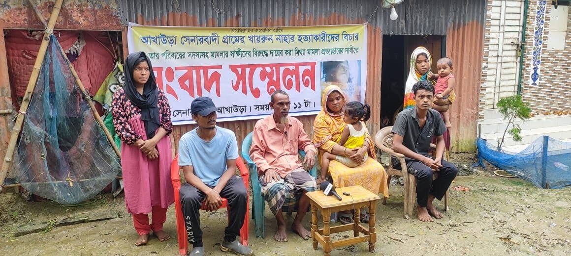 গত ১৩ সেপ্টেম্বর ছেলেকে মারধরের প্রতিবাদ করায় প্রতিপক্ষের হামলায় প্রকাশ্যে খুন হন সেনারবাদী গ্রামের ধনু মিয়ার স্ত্রী খায়রুন নাহার বেগম (৪৫)। এ ঘটনায় নিহতের পরিবার মামলা দায়ের করে। তবে পরে পরিবারটির সদস্য, মামলার সাক্ষী ও স্থানীয় কয়েকজনের বিরুদ্ধে একাধিক পাল্টা মামলা দেওয়ায় তারা হয়রানির শিকার হচ্ছেন বলে অভিযোগ উঠেছে।