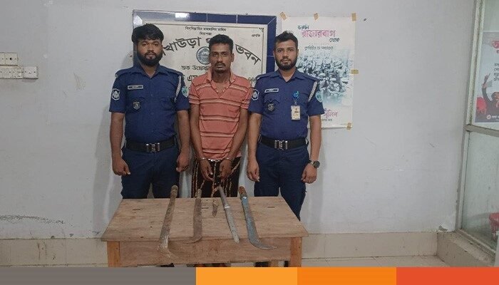 ব্রাহ্মণবাড়িয়ার আখাউড়ায় ডাকাতির প্রস্তুতিকালে একজন ডাকাতকে হাতেনাতে গ্রেপ্তার করেছে পুলিশ। এ সময় ঘটনাস্থল থেকে উদ্ধার করা হয়েছে দেশীয় অস্ত্রশস্ত্র।