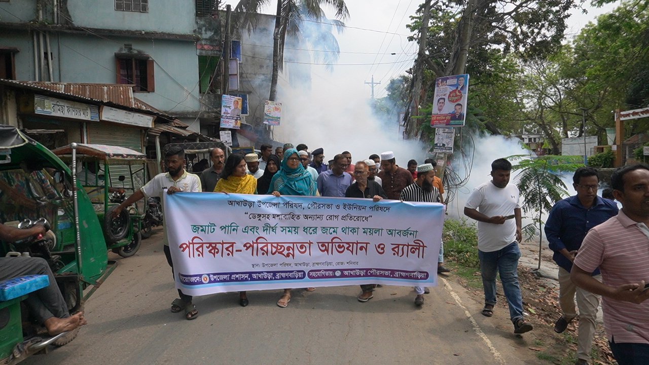 ব্রাহ্মণবাড়িয়ার আখাউড়ায় ডেঙ্গুসহ মশাবাহিত বিভিন্ন রোগ প্রতিরোধে পরিচ্ছন্নতা অভিযান ও জনসচেতনতামূলক র্যালি অনুষ্ঠিত হয়েছে। উপজেলা প্রশাসনের আয়োজনে এবং আখাউড়া পৌরসভার সহযোগিতায় শনিবার (১৪ মার্চ) এ কর্মসূচি পালন করা হয়।
