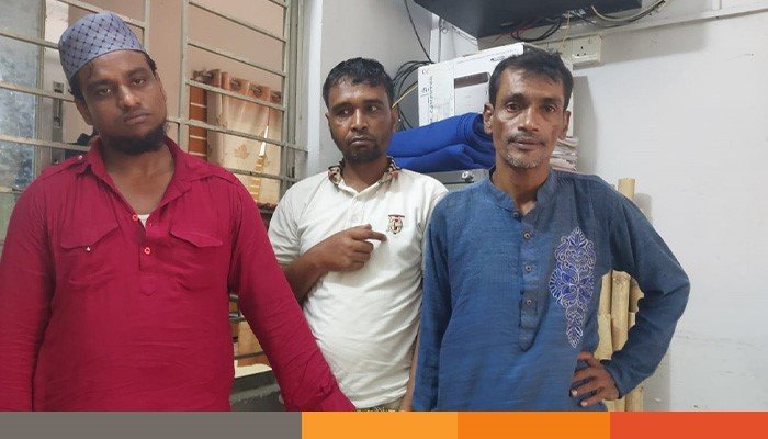 আটকরা হলো মো. পলাশ (৩০), হেলাল মিয়া (৩৫) ও মো. কাউছার (৪৫)। পলাশ ও হেলালের বাড়ি কুমিল্লার কোতোয়ালী এলাকায় এবং কাউছারের বাড়ি মসজিদ পাড়ায়। সন্ধ্যায় এ রিপোর্ট লেখা পর্যন্ত তাদের বিরুদ্ধে মামলা দায়েরের প্রস্তুতি চলছে।