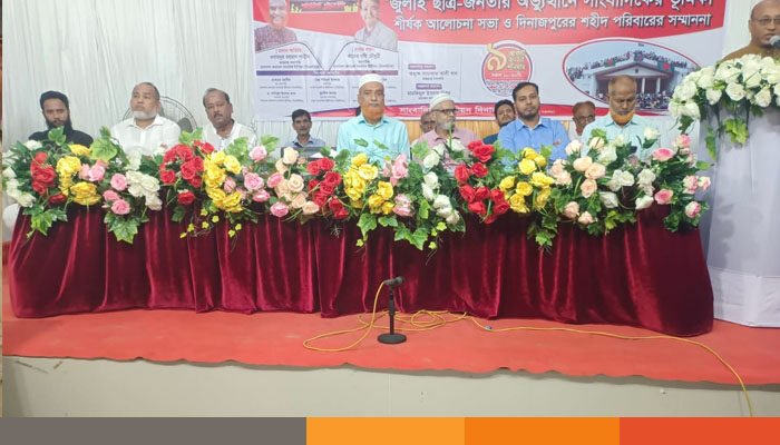 শনিবার দিনাজপুর প্রেসক্লাব মিলনায়তনে ফ্যাসিবাদী দুঃশাসনের অবসানে ‘জুলাই ছাত্র-জনতার অভ্যুত্থানে সাংবাদিকদের ভূমিকা’ শীর্ষক আলোচনা সভা ও দিনাজপুরের শহীদ পরিবারের সম্মাননা অনুষ্ঠানে প্রধান অতিথির বক্তব্যে তিনি এসব কথা বলেন।
