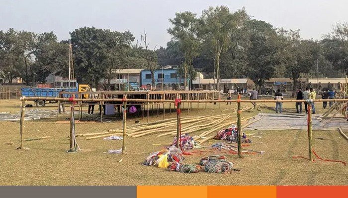 বিএনপি চেয়ারম্যান তারেক রহমানের ময়মনসিংহ সফর ঘিরে দলীয় নেতাকর্মীদের মাঝে উৎসবের আমেজ বিরাজ করছে। দীর্ঘ ২১ বছর পর আজ মঙ্গলবার (২৭ জানুয়ারি) তার আগমনকে কেন্দ্র করে ময়মনসিংহের সার্কিট হাউজ মাঠে নির্বাচনি জনসভার প্রস্তুতি নিচ্ছে বিএনপি। সার্কিট হাউজ মাঠে জনসভার জন্য মঞ্চ তৈরির কাজ চলছে।