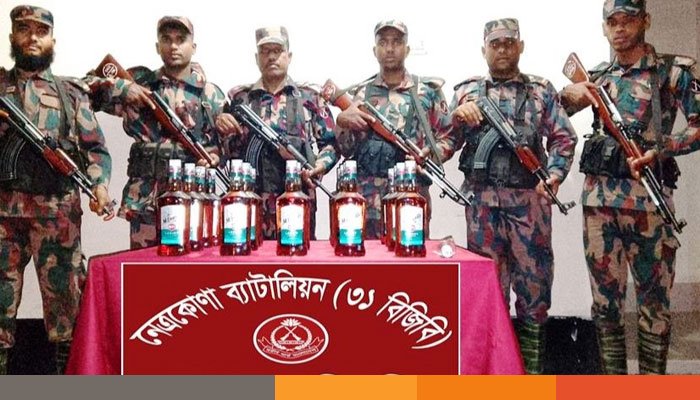 টহল দলটি বিওপি’র দায়িত্বপূর্ণ এলাকার সীমান্ত মেইন পিলার ১১৭৯ এমপি হতে আনুমানিক পাঁচশো গজ বাংলাদেশের অভ্যন্তরে কলমাকান্দা উপজেলার খারনৈ ইউনিয়নের আদাচিপা নামক স্থানে অবস্থান নেয়। সেখানে তল্লাশি চালিয়ে মালিকবিহীন অবস্থায় ২২ বোতল ভারতীয় ‘ম্যাকডুয়েলস্’ ব্র্যান্ডে মদ জব্দ করে বিজিবি। ধারণা করা হচ্ছে, বিজিবি’র উপস্থিতি টের পেয়ে চোরাকারবারিরা মদগুলো ফেলে পালিয়ে যায়।