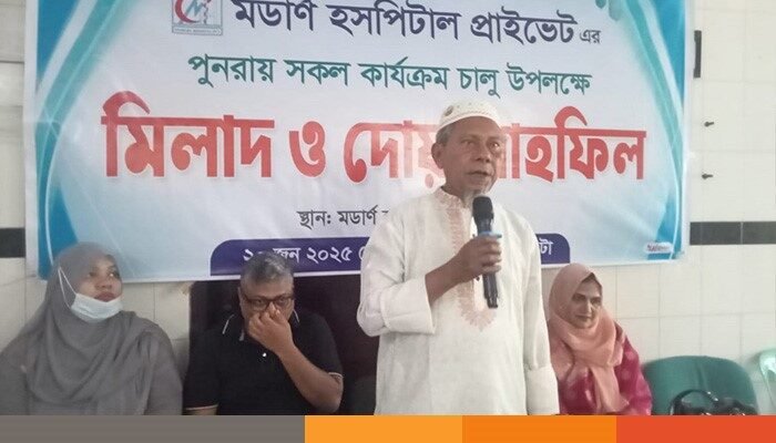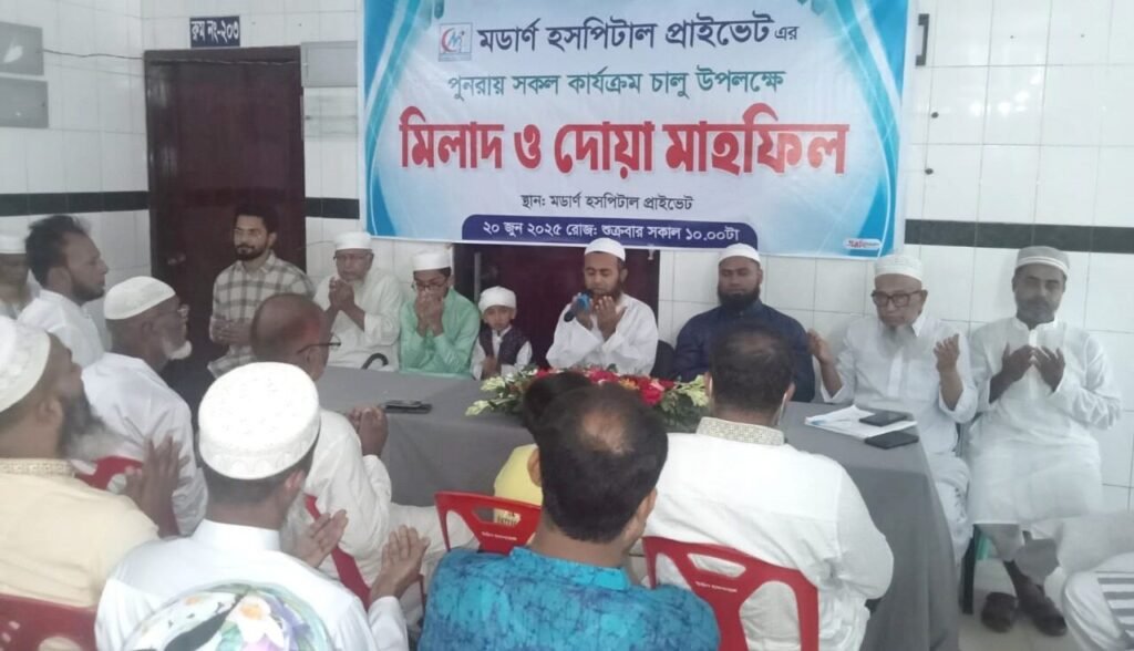 শুক্রবার দুপুরে শহরের নাপিতের পোল এলাকায় মডার্ণ হসপিটাল প্রাইভেটের সভা কক্ষে দোয়া, মিলাদ ও আলোচনা সভার মাধ্যমে হসপিটালটি পুনরায় সেবা প্রদান কার্যক্রম শুরু করে।
