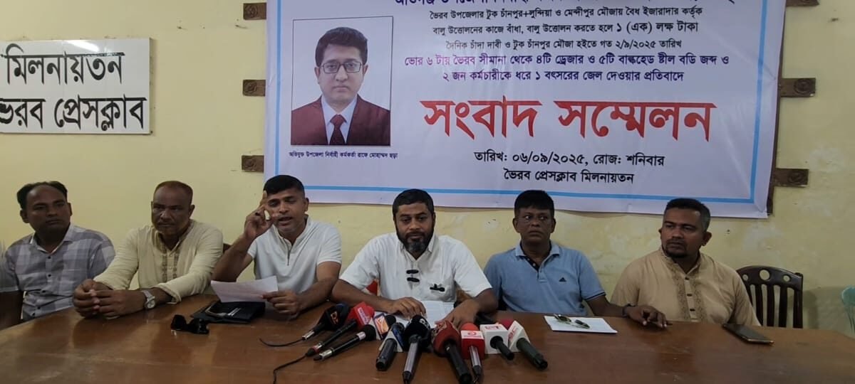 আশুগঞ্জের ইউএনও এর বিরুদ্ধে ভৈরবের ইজারাদারের কাছে দৈনিক লাখ টাকা ঘুষ দাবীর অভিযোগে সংবাদ সম্মেলন