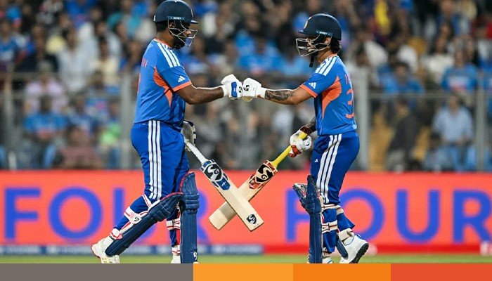 ওয়াংখেড়েতে টস হেরে ব্যাট করতে নামে ভারত। সুবিধা করতে পারেননি ওপেনার অভিষেক শর্মা। মাত্র ৯ রান করে আউট হন তিনি। শুরুতেই উইকেট হারালেও দলকে চাপে পড়তে দেননি স্যাঞ্জু স্যামসন ও ইশান কিষাণ। দ্বিতীয় উইকেট জুটিতে আসে ৯৭ রান। মাত্র ১৮ বলে ৩৯ রান করে সাজঘরে ফেরেন ইশান।