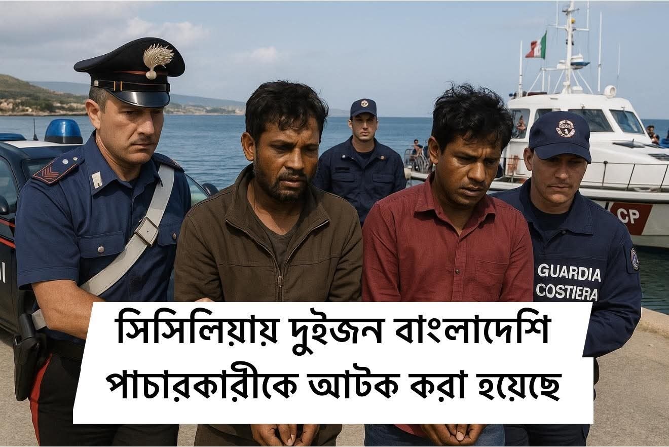 ইতালির সিসিলিয়ায় দুইজন বাংলাদেশি পাচারকারীকে আটক করা হয়েছে, যারা শরণার্থীদের উপর সহিংসতা ও নির্যাতনের অভিযোগে অভিযুক্ত। এই দুইজন সন্দেহভাজন পাচারকারীকে রাগুসা ও পালেরর্মো পুলিশ ও কোস্ট গার্ড যৌথ তদন্তের মাধ্যমে গ্রেফতার করা হয়েছে।