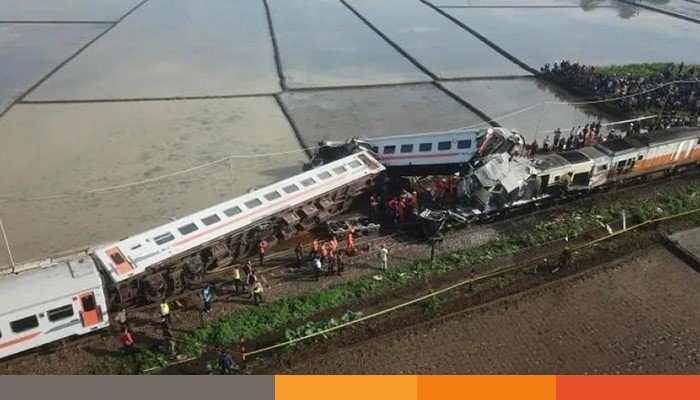 প্রতিবেদনে বলা হয়েছে, রাজধানী জাকার্তার কাছে এ দুর্ঘটনা ঘটেছে। রাষ্ট্রীয় মালিকানাধীন রেল কোম্পানি কাই জানিয়েছে, সোমবার রাতে রাজধানীর বাইরে দুটি ট্রেনের মধ্যে সংঘর্ষ হয়েছে। এ ঘটনায় ব্যাপক ক্ষয়ক্ষতি হয়েছে। ঘটনাস্থলে ইতোমধ্যে উদ্ধার অভিযান শুরু হয়েছে।