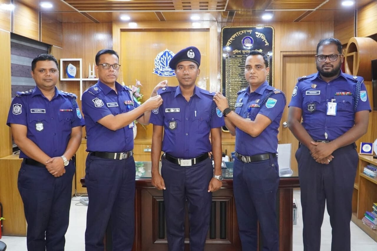 নরসিংদী জেলা পুলিশে কর্মরত সাব-ইন্সপেক্টর (নিরস্ত্র) মোহাম্মদ নাজমুল হাসান পুলিশ ইন্সপেক্টর (নিরস্ত্র) পদে পদোন্নতি লাভ করেছেন। তাঁর এই পদোন্নতির স্বীকৃতিস্বরূপ সোমবার (১০ নভেম্বর ২০২৫) দুপুরে তাঁকে আনুষ্ঠানিকভাবে র্যাংক ব্যাজ পরিয়ে দেন পুলিশ সুপার, নরসিংদী মোঃ মেনহাজুল আলম, পিপিএম মহোদয়।