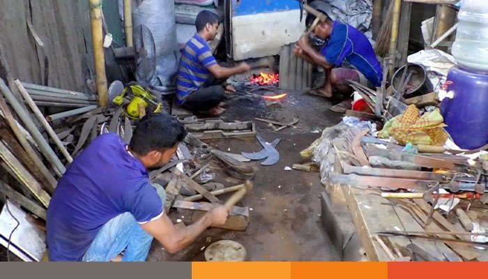 ঈদকে সামনে রেখে ব্যস্ততা বাড়লেও সারা বছর অলস সময় পার করতে হয় কামার শিল্পিদের। তাঁদের এই দু:সময়টাকে কষ্টকর করে তুলেছে কয়লা, ইস্পাত আর কাঁচামালের দাম বৃদ্ধি। সেই সাথে অনলাইন শপিংয়ে আধুনিক মেশিনে তৈরি যন্ত্রপাতির আগ্রাসনে অনেকটাই কোণঠাশা হয়ে পরেছে এখন দেশীয় এ ঐতিহ্য, তাই আর্থিক সংকটসহ নানা কারনেই পৈতৃক এ পেশা থেকে অনেকেই চলে যাচ্ছেন অন্য পেশায়, এমনটাই জানান স্থানীয় কামার ব্যবসায়ীরা।