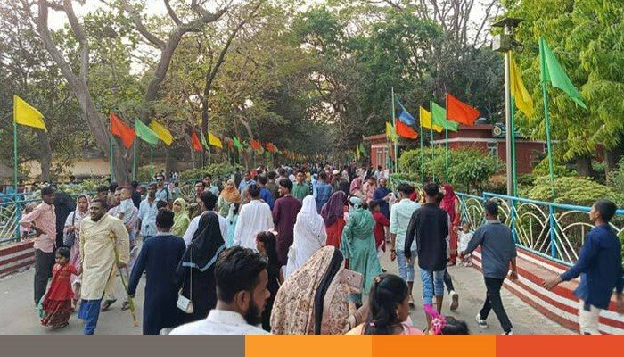 বৃহস্পতিবার (৩ এপ্রিল) সকাল থেকেই রমনা পার্ক, মিরপুর-১ এর জাতীয় চিড়িয়াখানা, বোটানিক্যাল গার্ডেন, শ্যামলী শিশু পার্ক, ফ্যান্টাসি কিংডম ও বলধা গার্ডেনসহ রাজধানীর অন্যান্য বিনোদন কেন্দ্রে দর্শকদের প্রচুর ভিড় দেখা গেছে। ছোট বড় সব বয়সের মানুষের উপস্থিতিতে মুখরিত হয়ে উঠেছে বিনোদন কেন্দ্রগুলো।