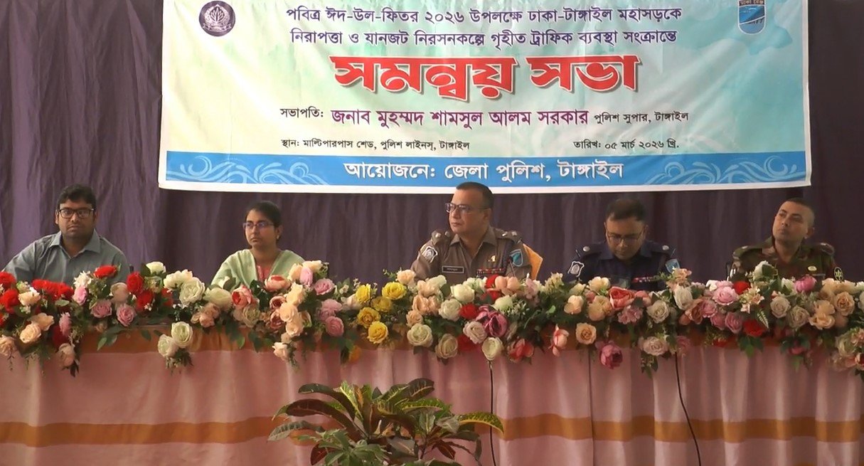 আসন্ন ঈদ-উল ফিতল উপলক্ষে ঈদ যাত্রায় ঢাকা-টাঙ্গাইল-যমুনা সেতু মহাসড়কে যানজট নিরসনে গৃহীত ট্রাফিক ব্যবস্থা সংক্রান্ত সমন্বয় সভা অনুষ্ঠিত হয়েছে। বৃহস্পতিবার দুপুরে জেলা পুলিশের উদ্যোগে পুলিশ লাইনসের মাল্টিপারপাস শেডে