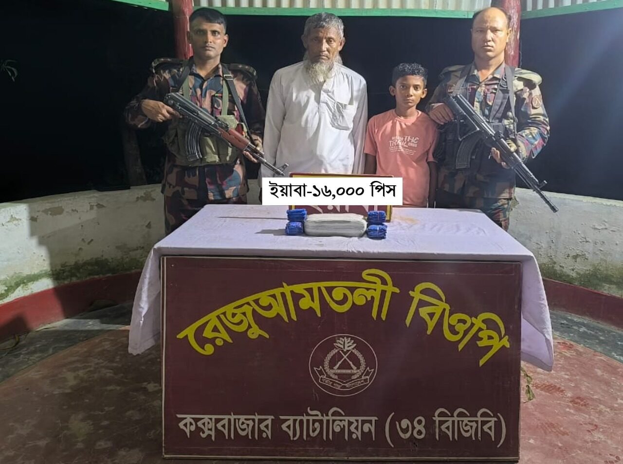 কক্সবাজারের উখিয়ার রেজু আমতলী সীমান্তে বর্ডার গার্ড বাংলাদেশ (বিজিবি) এর বিশেষ অভিযানে ১৬ হাজার ইয়াবা ট্যাবলেটসহ দুই রোহিঙ্গাকে আটক করেছে ৩৪ বিজিবি ব্যাটালিয়নের সদস্যরা। মঙ্গলবার (১০ সেপ্টেম্বর) সন্ধ্যা ৬টা ৫ মিনিটে এ অভিযান পরিচালিত হয়।