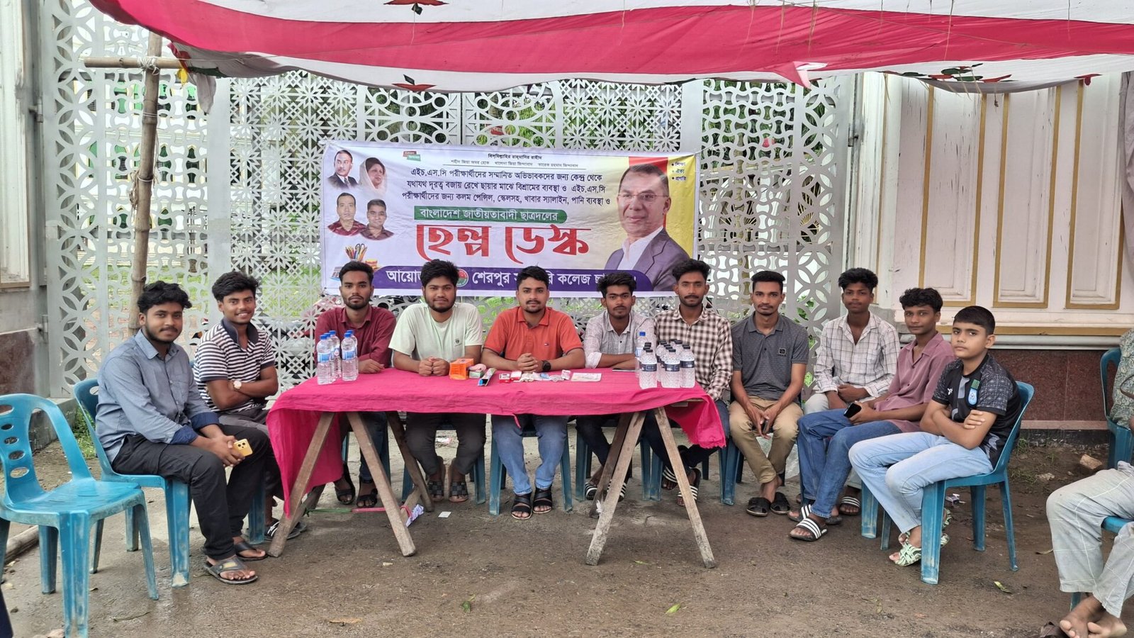 সরেজমিনে দেখা যায়, শেরপুর সরকারি কলেজের সামনে অস্থায়ী ছাউনির নিচে বসে আছে একদল তরুণ। অপর পাশে চেয়ারে বসে বিশ্রাম নিচ্ছেন অভিভাবকরা। ছাত্রদলের সদস্যরা কিছুক্ষণ পর পর খাবার পানি সরবরাহ করছেন। আবার কেউ সরবরাহ করছেন হাতপাখা। এছাড়াও যানবাহন না পাওয়ার কারণে সময় মতো পরীক্ষা কেন্দ্রে পৌঁছাতে কোন শিক্ষার্থী অসুবিধায় পড়লে ছাত্রদল কর্মীরা দ্রুততার সাথে শিক্ষার্থীদের কেন্দ্রে পৌঁছে দিচ্ছে। ছাত্রদলের এমন ব্যতিক্রমধর্মী উদ্যোগে খুশি পরীক্ষার্থী ও তাদের পরিবারের সদস্যরা।