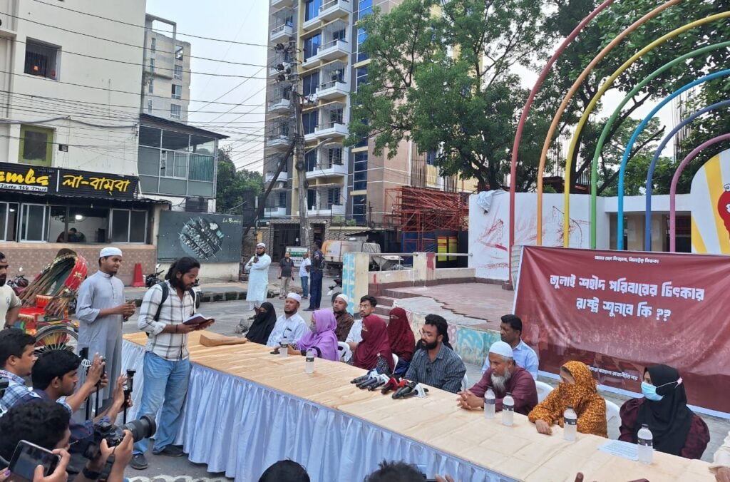এ সময় ১৩টি শহীদ পরিবারের সদস্যগণ উপস্থিত ছিলেন এই আয়োজনে। শহীদ পরিবারের সকল সদস্য গণমাধ্যমের কাছে প্রায় একই ধরনের দাবি তোলেন। তারা শহীদ ছাত্র-জনতার খুনি হাসিনার দোসরদের বিচার না হওয়া পর্যন্ত নির্বাচনের কোন প্রয়োজন নেই বলে দাবি তোলেন। এছাড়াও সরকারকে আওয়ামী লীগকে একটি নিষিদ্ধ সংগঠন হিসেবে ঘোষণা করতে হবে বলে দাবি জানান।