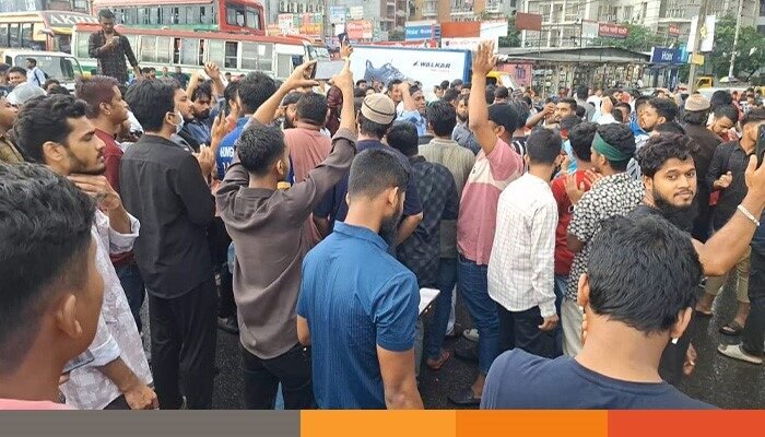 বিক্ষোভকারীরা গোপালগঞ্জে হামলা কেন প্রশাসন জবাব চাই, দিয়েছিতো রক্ত আরো দিবো রক্ত, রক্তের বন্যায় ভেসে যাবে অন্যায়, একটা একটা লীগ ধর, ধইরা ধইরা জবাই কর, ইনকিলাব ইনকিলাব, জিন্দাবাদ জিন্দাবাদ বলে স্লোগান স্লোগানে মুখরিত করে তোলে বিএনএস সেন্টার ও আজমপুর এলাকা।
