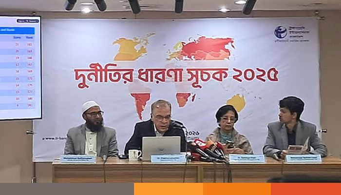 জার্মানির বার্লিনভিত্তিক আন্তর্জাতিক সংস্থা ট্রান্সপারেন্সি ইন্টারন্যাশনালের দুর্নীতির ধারণা সূচকে (সিপিআই) বিদায়ী ২০২৫ সালে বাংলাদেশের অবস্থান ১৩তম। ১৮২টি দেশের মধ্যে বাংলাদেশের অবস্থান দাঁড়িয়েছে ১৫০ তম। ২০২৪ সালে ১০০ স্কোরের মধ্যে বাংলাদেশের স্কোর ছিল ২৩ এবং ২০২৩ সালে স্কোর ছিল ২৪। মানে হলো, দুর্নীতি বাড়ায় বাংলাদেশের স্কোর ২০২৪ সালের তুলনায় ২০২৫ সালের তুলনায় এক কমেছে। কিন্তু অন্য দেশ আরও খারাপ করায় সূচকে এক ধাপ এগিয়েছে বাংলাদেশ।