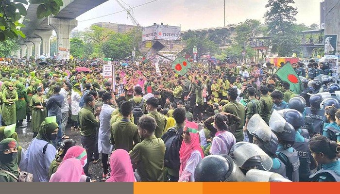 এক দফা দাবিতে নার্সিং শিক্ষার্থীদের শাহবাগ অবরোধ, দুর্ভোগে মানুষ