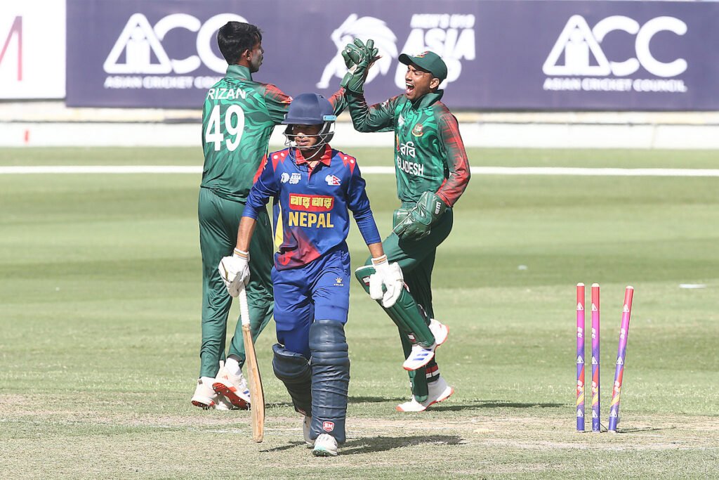 দুবাইয়ের এই ম্যাচে নেপাল ব্যাট করে ১৪১ রানে আটকে যায়। ওপোর আকাশ ত্রিপাঠি, মিডলঅর্ডারে উত্তম মাগার ও লেজের সারিতে অভিষেক তিওয়ারি ছাড়া নেপালের আর কোনো ব্যাটার ব্যাট হাতে দাড়াতেই পারেননি। আকাশ ৭৭ বলে ৫ বাউন্ডারিতে ৪৩ রান করেন। টপ ও মিডলঅর্ডারের পরের চার ব্যাটারের সম্মিলিত সংগ্রহ মাত্র ১৫ রান মাত্র! উইকেটকিপার ব্যাটার উত্তম মাগার ছয় নম্বরে ব্যাট করতে নেমে রানের চেয়ে উইকেটে টিকে থাকার দিকেই বেশি মনোযোগ দেন। ৬৯ বলে তার ব্যাট থেকে আসে ২৯ রান। বাউন্ডারি হাঁকান দুটি। নয় নম্বরে ব্যাট করতে নামা অভিষেক তিওয়ারি ৩৫ বলে ২৯ রান করায় নেপালের স্কোর কোনো ক্রমে দেড়শ’র কাছাকাছি পৌছায়।