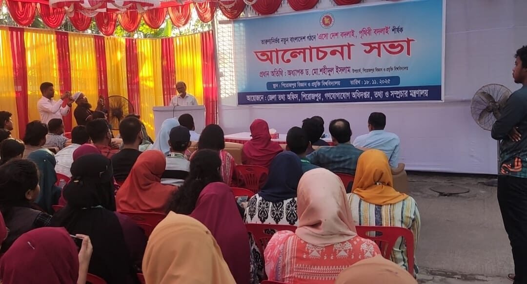 ‘এসো দেশ বদলাই, পৃথিবী বদলাই’ প্রতিপাদ্যে পিরোজপুর বিজ্ঞান ও প্রযুক্তি বিশ্ববিদ্যালয়ে এক আলোচনা সভা অনুষ্ঠিত হয়েছে। মঙ্গলবার (১৮ নভেম্বর) বিকেলে জেলা তথ্য অফিসের আয়োজনে এ সভা অনুষ্ঠিত হয়।